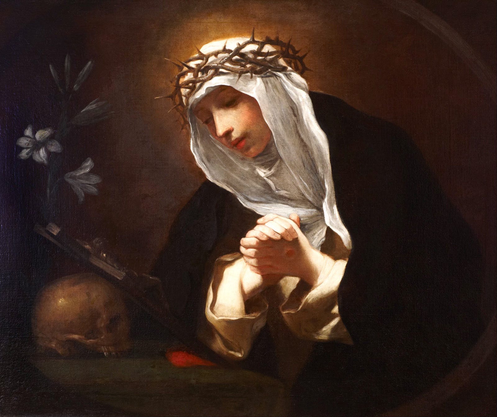 “She often recounted for her confessors … what took place when our Lord Jesus Christ first began to appear to her. He appeared to her one day while she was at prayer, and said: ‘Do you know, daughter who you are and who I am? If you know these two things you have beatitude in your grasp. You are she who is not, and I Am He Who Is. Let your soul but become penetrated with this truth, and the Enemy can never lead you astray.”